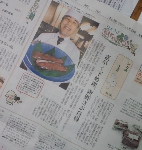 本日の神戸新聞ですが、兵庫県の多可町のシカ肉処理施設の記事が紹介されてました。